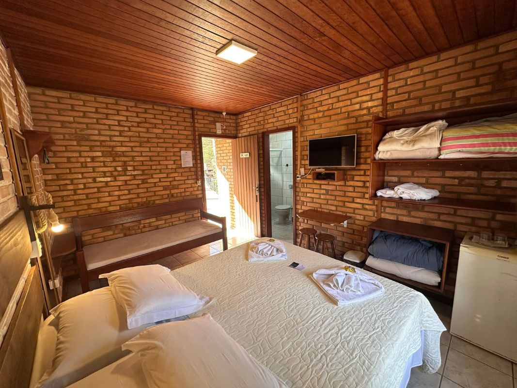 Com uma cama de casal e duas camas de solteiro, a Cabana das Flores acomoda até quatro pessoas com conforto e privacidade. Ideal para casais ou famílias que desejam tranquilidade em meio à natureza, ela oferece um ambiente acolhedor e bem estruturado.